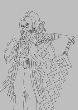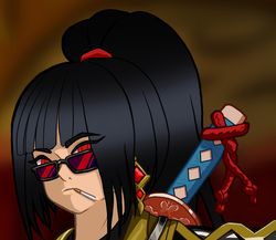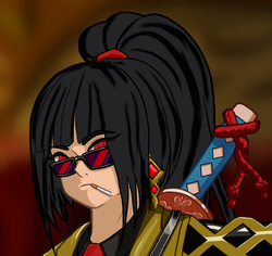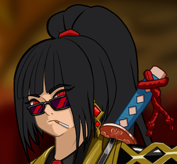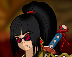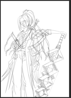 Вроде все готово. Далее от нас требуется лишь докинуть цвет через градиет-мапы на все области, и мы в шоколаде. Замечу еще, что лишний лайн по типу полосок на жилетке или бабочек на гарде я выпилил за ненадобностью. М-м, да, я в курсе что катана за спиной кривовата, но волновало бы это меня еще.