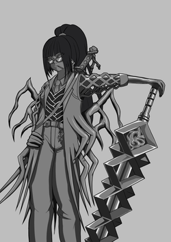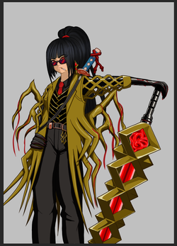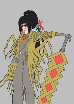 Во, офигенно же! Я еще добавил кровоподтеков грубо, так как и у аномалки, и у снаряги с нее они были. Так-то мне кажется еще немного недоработал с внешней частью "пиджака", ибо она как видим совсем без отражений или прочего. Да и шут с ней. Кстати, еще добавил свечение кристаллу в мече, хоть вроде бы и не подразумевалось: