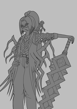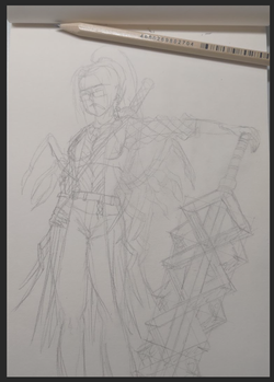 Ох, как вы думаю догадались, эта серая заливочка ох не спроста была добавлена. Да-да, тут нас будут ждать... градиент-мапы! Я в них не умею, как и во все остальное, но мне показалось, что это хороший метод в данной ситуации. Первый скрин -- на моменте завершения раскидывания освещенности по мечу и немного по веткам сзади: