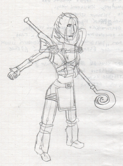 тян с копьем в чб